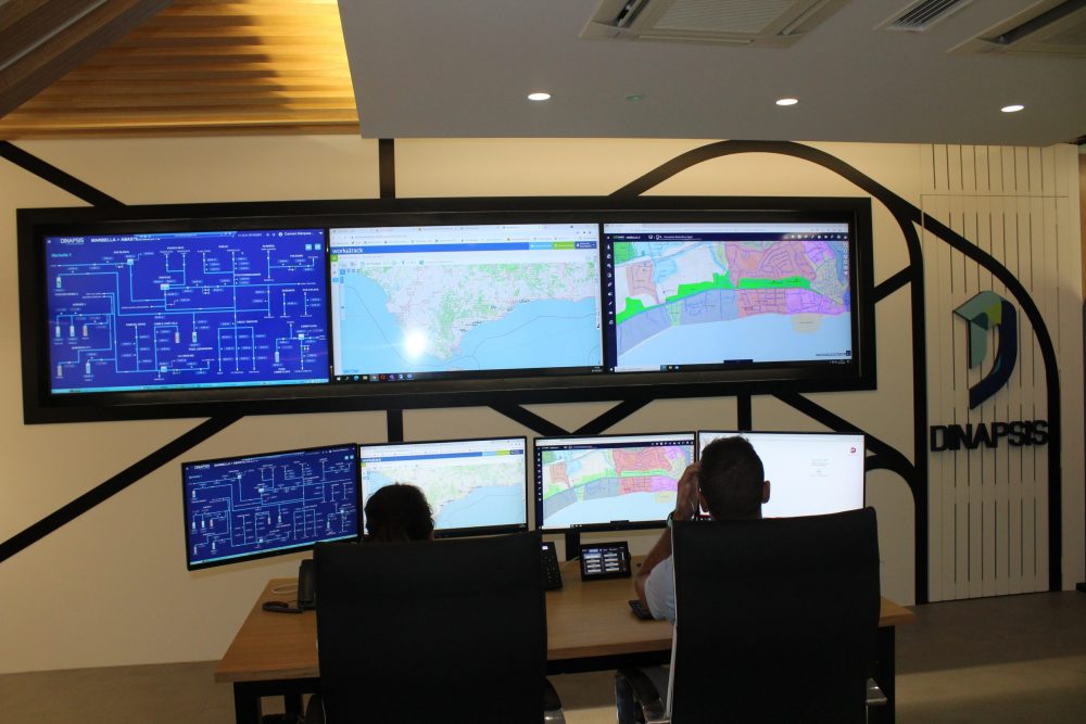 El Hub Operativo de Dinapsis del Sol, ubicado en Marbella, apuesta por la digitalización completa de la gestión del ciclo del agua, a través de un conjunto de aplicaciones tecnológicas innovadoras, para alcanzar la máxima eficiencia y resiliencia hídrica. Además permite la realización de una planificación centralizada, el control remoto de las instalaciones y la optimización de propuestas de inversiones, con las máximas garantías en materia de ciberseguridad.